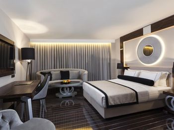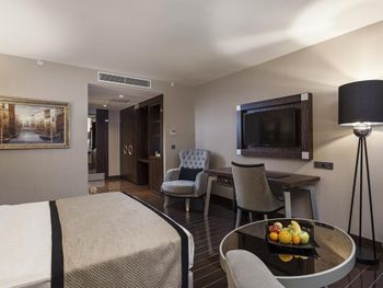 Во всех номерах отеля Ramada Hotel & Suites Istanbul Sisli запрещено курить. Номера оснащены кондиционером, телевизором со спутниковыми каналами и телефоном. В числе удобств сейф для ноутбука, мини-бар и гладильные принадлежности. Собственная ванная комната с душем укомплектована феном, халатом и бесплатными туалетно-косметическими принадлежностями.