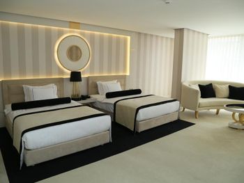 В том номере, что забронировали изначально, терраса была закрыта светонепроницаемым оргстеклом - было темно, переселили в другой, который был значительно меньше и узкий. В итоге за доплату переехали в угловой люкс - отличный номер на 5 этаже (с доплатой 120 долларов за 3 ночи). Из проблем - небольшой неприятный запах из раковины и постоянные перепады температуры воды в душе (эдакий контрастный душ).
