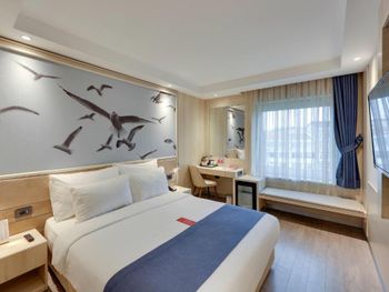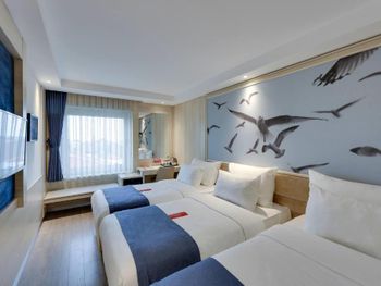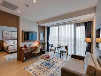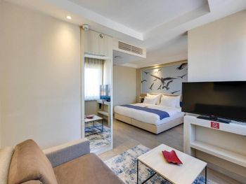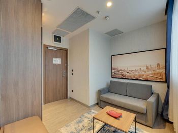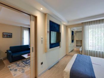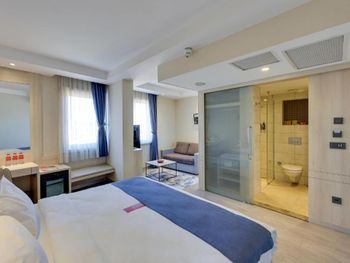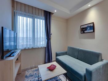 Отель удобно расположен, напротив остановки трамвая. Приехали мы 1го января, часов в 16, номер (люкс) был не готов, нам предложили другой номер на час-два. Зашли в номер оставить вещи. Очень маленький номер с видом на крышу и стены. Решили прогуляться, покушать. Заселение в наш номер летело снежным комом. Номер нам подготовили на 2-х человек, вместо трех. Постельное белье для ребенка принесли после 3х напоминаний. Одеяло для ребенка несут до сих пор (4 дня). При том, что мы каждый день напоминаем и просим одеяло. О чудо!! Пока я писала отзыв нам принесли одеяло!!! Номер рассчитан на 2х человек. Диван разбирается и посидеть в номере не где. Мы приносили стулья с трассы, иначе сидеть только на кровати. Не взирая на постоянные просьбы о том, что бы нам укомплектовали номер на 3 персоны, у нас всего было 2, 2 зубные щетки, 2 набора полотенец, 2 чашки. Ещё, в отеле нет бальзама для волос. В нашем номере был шампунь-гель из диффузора на стене и всё. Завтраки довольно скудные. Голодным конечно не уйдешь, есть мюсли, овощи, яйца, омлет, булки, чай, кофе, йогурты, а колбаса (турецкая) ещё. Общее впечатление от отеля: хорошая, полноценная трешка. Постоянно приходится "просить" о чем-то персонал (полотенце, зубная щетка, бельё). Номер люкс рассчитан на 2х гостей. Обычные номера тем более. Заманивает расположение, трасса в номер люкс.