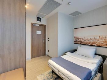 Мебель уже была изрядно изношенной, нужно обновить. Телевизор был обычный, с каналами, пора бы уже везде повесить smart tv, потому что доступа к интернету нет:( В номере довольно душно, а при открытии окна слишком шумно из-за машин и трамвая, как будто плохо сделана вентиляция. Хотя шумоизоляция при закрытом окне хорошая. Завтрак скудный, об этом уже многие писали, но напишу еще раз - шведский стол маленький, поэтому на многое не рассчитывайте. Наесться можно, но только простыми закусками. В общем, завтраки здесь брать не советую. Дверь в ванную комнату - это дверь от шкафа. Она просто ездит по стене. При этом в ванной нельзя закрыться при необходимости и слышимость огромная из-за этого. В душевой дверь уже тоже старенькая из-за чего между резинками есть дыра и вода попадает на пол за пределы душевой. На улице у отеля довольно грязно, что сильно портит вид у входа, да и в целом неприятно от такого. Цены в ресторане при отеле крайне высокие:( В хаммам нельзя попасть без предварительной записи. Интернет в отеле требовал постоянной авторизации (каждый день) при подключении с одного и того же устройства, что очень бесило.