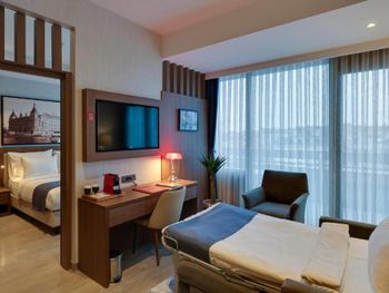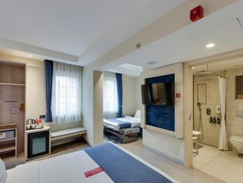 Отель Ramada by Wyndham Istanbul Old City идеально расположен прямо напротив трамвайной остановки Fındıkzade и предлагает идеальное сочетание комфорта, удобства и аутентичного очарования Стамбула. Наши 108 современных номеров оснащены кондиционерами, бесплатным высокоскоростным Wi-Fi, телевизорами с плоским экраном, принадлежностями для чая и кофе, мини-барами и рабочими зонами — некоторые из них имеют дополнительные гостиная зона для большего комфорта. Гости могут насладиться богатым завтраком по системе «шведский стол» и отведать турецкие и международные блюда в течение всего дня в ресторане Marmara. Для расслабления и оздоровления посетите спа-центр Aqua Plus, где вас ждут традиционный турецкий хаммам, сауна, паровая баня и массажные услуги. Полностью оборудованный фитнес-центр и терраса дополнят ваши впечатления. Деловые путешественники могут воспользоваться нашими конференц-залами, бизнес-услугами и круглосуточной помощью консьержа. Отель расположен в историческом районе Фатих, всего в нескольких минутах от самых знаковых достопримечательностей города, включая собор Святой Софии, дворец Топкапы, Голубую мечеть и Гранд базар, что делает Ramada by Wyndham Istanbul Old City идеальным местом для проживания в самом центре Стамбула