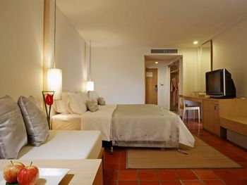 Статус гостиницы 4* , в реальности с трудом дотягивает до 3*, Люксовые номера с выходом и видом на бассеин оставят хорошее впечатление , но остальные номера при возможности лучше не заказывать (вид будет на забор, мусорку , в соседний отель , со старым ремонтом). Общее состояние отеля , уставший, затертый , требующий капитального ремонта. Номинально есть тренажёрный зал , в действительности все тренажёры старые и нерабочие. Бронировали через Booking 2 взрослых +ребёнок с завтраками включенными, по приезду администрация пыталась удержать деньги за завтрак ребёнка , вопрос был решён в пользу гостей . Вода из душа тёплая, горячей нет , несколько раз обращались в администрацию вопрос так и небыл решен.
