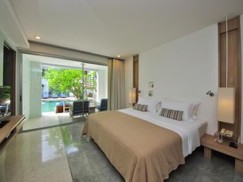 Бронировала номер с выходом в бассейн. Бассейн маленький и темный. Покрытие вокруг бассейна неплотно прилегает к основанию и в результате, когда гости отеля проходят мимо твоего номера, половицы стучат достаточно громко. И так с раннего утра и всю ночь. И еще: не смотря на то что , персонал ограничивает время пользования бассейном до 20 часов, наших людей это не останавливает и они всю ночь сидят у бассейна громко общаясь, выпивая и плавают, плавают))))) В общем не стоило переплачивать за номер, можно было взять повыше.
