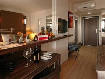 В номерах курортного отеля Akbuk Ramada установлен кондиционер и обустроен балкон с красивым видом. Номера оснащены сейфом и телевизором с плоским экраном и спутниковыми каналами, в них можно воспользоваться бесплатным Wi-Fi. Также в числе удобств мини-холодильник и кофемашина в номере.