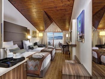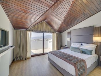 Курортный отель Ramada Akbuk с частным пляжем и открытым бассейном с 4 водными горками расположен на курорте Акбук. Гости могут посетить тренажерный зал и отдохнуть в турецкой бане или сауне. Спа-услуги и услуги массажа предоставляются за дополнительную плату.