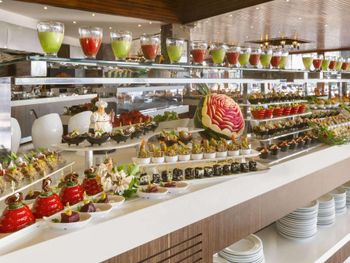 В многочисленных ресторанах отеля, работающего по системе «все включено», готовят разнообразные блюда турецкой и интернациональной кухни (включая главный ресторан с обслуживанием «шведский стол», турецкий и рыбный рестораны с обслуживанием по меню).