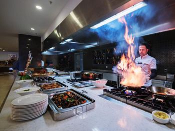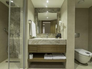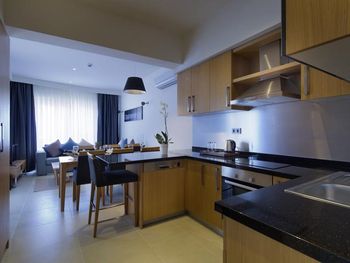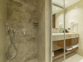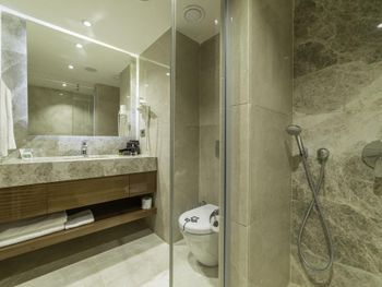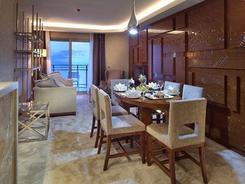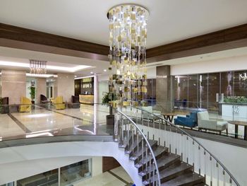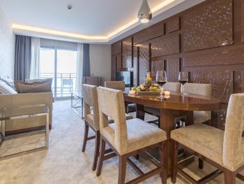 Далеко от центра города, гостей считают за идиотов. Видите ли в целях безопасности в пятизвездочном отеле не предоставляется утюг. Можно заказать услугу глажки, что конечно же за дополнительную плату) Еду из ресторана выносить в номер не разрешается, но это не касается европейцев)) на вынос еды для них закрываются глаза. Я поставила DND, что означает НЕ БЕСПОКОИТЬ. Для персонала, я сообщу что в этом случае housekeeping НЕ ИМЕЕТ права заходить в номер! Но это не остановило их.. А еще я бронировала 1 двуспальную кровать. Мне выдали 2 раздельные и предложили либо плохой вид, либо соединить кровати. Я выбрала второе. И постоянно мучалась так как они раздвигались. Плюс в номере было по началу всего лишь ОДНО полотенце. В номере для двоих.. А по выезду нам заказали такси, а белбой донес чемоданы до пол пути 🤣 дальше мы сами таскали их по подъему. Огромный выбор еды, но все не вкусно