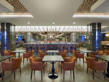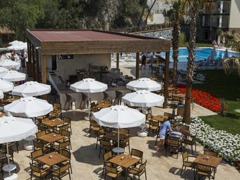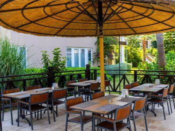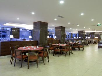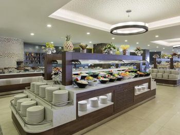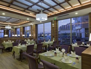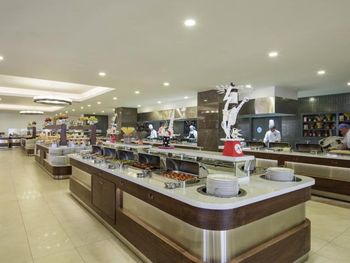 В курортном отеле Ramada Kusadasi & Golf, работающем по системе «все включено», открыты рестораны с обслуживанием по меню и в формате «шведский стол». Помимо этого, в распоряжении гостей многочисленные бары и снэк-бар. Доставка еды и напитков в номер производится в любое время суток. Ночной клуб отеля станет отличным местом для отдыха.