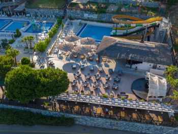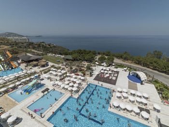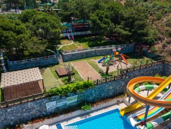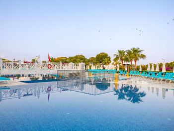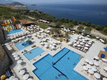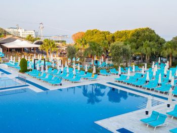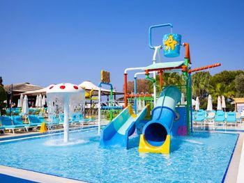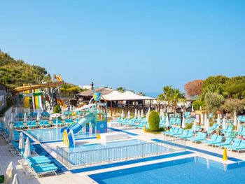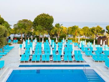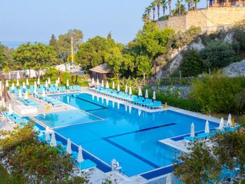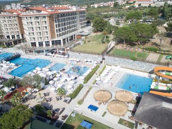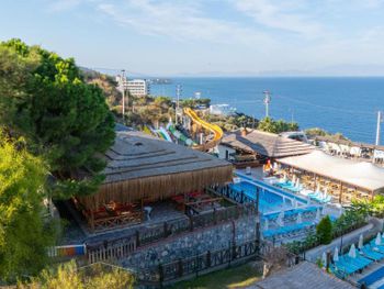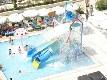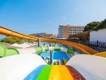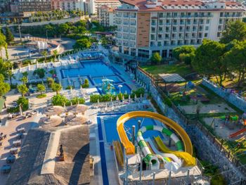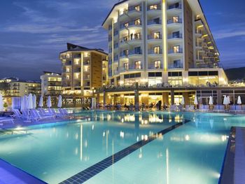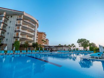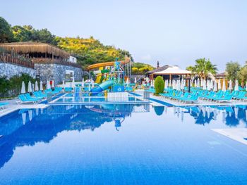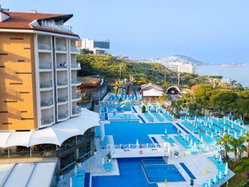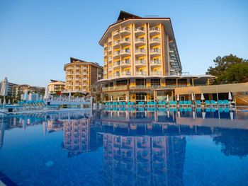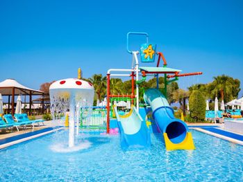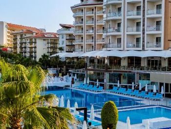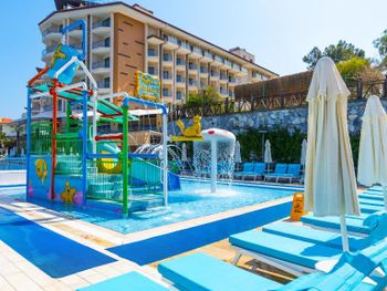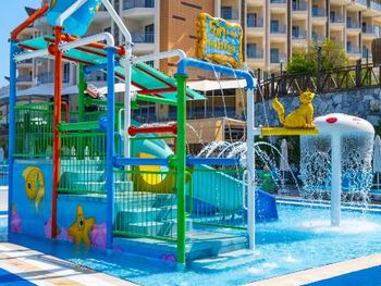 По Турции катались много и очень любим, раньше отдыхали со старшим ребенком, теперь с младшим. Это был самый неудачный наш выбор отеля. Все плюсы перекрывают минусы: 1. Бассейн и прилегающие бары. Одним словом- ГРЯЗЬ и отсутствие безопасности. Шлепок на одной пальме и пакет на другой висели все 16 дней нашего отдыха. Три дня подряд взрослый бассейн перекрывали по причине детских неожиданностей. Запретите детям до 5 лет купаться во взрослом бассейне!!! у них есть лягушатники! Посуда, столы, полы убиралась очень плохо и не регулярно.Тарелки под лежаками и переполненные мусорки убирались только к вечеру. Грязные подушки на диванчиках. После пенной вечеринки возле бассейна никто не вымыл полы, все было в скользкой пене, ходить было опасно, одна отдыхающая упала и поранилась. 2. Отель переполнен, количество детей на кв. метр зашкаливает при очень небольшой территории. В зону бассейна +16 могут себе позволить ходить только те, кто без детей, т.к. одних их на другом бассейне и горках их не оставишь. 3. Территория для игр наверху неухоженная и маленькая, фут площадка-это не площадка, а пятачок. 4. Управляющему: перестаньте экономить на мелочах, купите сидушки в амфитеатр! Когда вечером роса - все мокрое, приходится ходить с ворохом салфеток и вытирать себе сиденье. Купите наконец хороших мячей для футбола. 5 дней ждали футбольный мяч, к кому только не обращались. Купили, лопнул после одной игры. Спасибо аниматору , который купил свой и иногда разрешал в него играть. 5. Детская анимация очень слабая, только присмотр за маленькими лет до 5 и вечером мини-диско; для детей постарше, которых там очень много ничего почти нет, хотя программа для них есть в мини-клубе, но по ней ничего не проводится или проводится на "отвали" 6. Пляж на который ходит автобус от отеля: грязь и убогость. Окурки и мусор кругом (спец машину просеиватель купите), заход в море по каким-то строительным мешкам