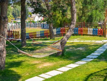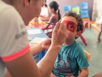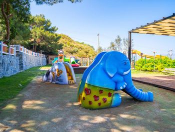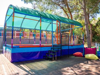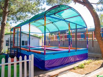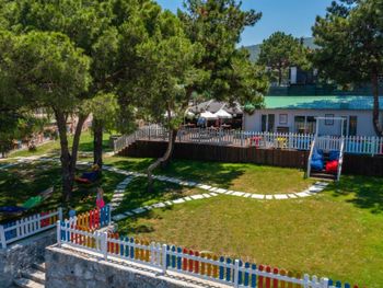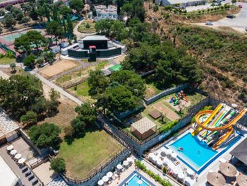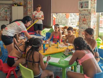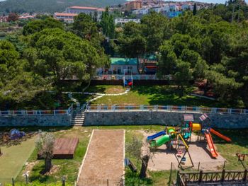 Территория большая, но мало место для активностей. Есть волейбольная площадка, но она окружена колючей травой, которая прокалывает насквозь мячи, площадку из песка не поливают перед игрой, аниматоры давали мяч через день для общей игры, пришлось покупать свой. Музыка за всю неделю была однообразной.