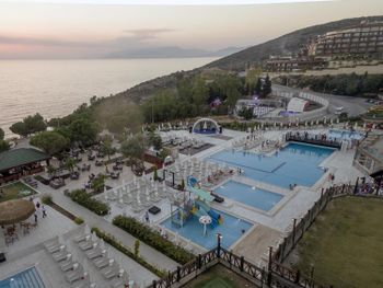 Чудесный персонал. Очень вкусная и свежая еда. Огромное разнообразие. Вкусный кофе, особенно в кафе, где делают вафли. Отличные коктейли. Большая территория. Есть бассейн, куда не пускают детей и нет всякой анимации - полный релакс. На остальной территории музыка, иногда всякие активности. Пляж собственный, не рядом, раз в час туда ходит автобус. Но вполне чисто, хорошая водичка, для захода через камни положены огромные мешки, что очень удобно. Также на пляже есть перекусы и напитки. По вечерам разные шоу, которые не повторяются неделю. Отель очень советую!