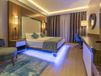 1. Не смотря на то что заранее указали время прибытия в отель 11:00. Нас смогли заселить только после 15:00. 2. После заселения пошли к бассейну, взяли полотенца на Выходе к бассейну, в 17:00 вернулись что бы их обменять на новые для СПА, на что нам ответили- что полотенца закончились. После подошли на ресепшен СПА, чтоб взять полотенца для хамама , на что нам сказали что выдача полотенец прекратилась в 17:00, хотя в брошюре выданной на ресепшене при заселении было указано что полотенца выдаются до 18:00, что я тоже считаю бредом, с учётом того что СПА работает до 20:00. 3. В номере было довольно грязно: заляпано зеркало, волосы в душевой, залапанные блестящие поверхности, пятна на полу в комнате, пыль вдоль плинтуса. 4. Кухня очень посредственная, как на обед так и на ужин, либо вообще не готовят красного мяса, либо в очень в малых количествах. В основном будьте готовы питаться индейкой и курицей. Оливки на завтрак тоже разочаровали, так как они оказались далеко не первой свежести. 5. Не верьте картинкам с пляжем, у этого отеля нет пляжа на территории. До пляжа необходимо ехать на сервисном стареньком автобусе, хоть и не далеко, примерно 5 минут, но все равно не приятно. Стоит отметить, что этот автобус ездит раз в 1 час, а то и в полтора. Ну и пляж, тоже кстати, вызвал не самые тёплые чувства. 6. Бильярд в игровой комнате платный - 40 лир час и 25 лир пол часа, как нам пояснила бабуля занимающая там роль администратора - это маркетинг. 7. Так как пляж оставлял желать лучшего, провели много времени в бассейне, в результате чего привезли с отдыха грибок в виде заболевания.