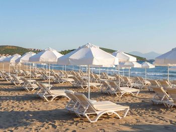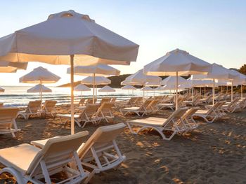 Пляж гостиницы в 3км от гостиницы!!!!! только на автобусе!!!! Пляж грязный, не комфортный с плохим заходом в море! пластиковые лежаки без матрасов. Нам не дали номер с видом на море, который мы заказывали и пытались разместить нас с занижением качества номера! Пришлось после перелета и дороги объясняться с персоналом. Ночная смена крайне недружелюбна. Выбирали гостиницу с кортами, играть в теннис, нам не удалось получить корт. Услуга есть, но ее невозможно получить! Консьержа почти никогда нет на месте, крайне необязательный, подтвердил нам время тренировки, мы пришли, корты заняты. В первый день пришлось просить убрать номер, забыли.