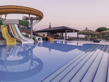 Хорошие номера, большие и чистые. Горячая вода, фен, минибар полон. Еда в ресторане довольно разнообразная. Аквапарком и бассейнами не пользовались, но видели, что там всё хорошо. Неплохая анимация для детей и взрослых. Кофе и мороженое в ночном кафе тоже отличные. В целом для семейного отдыха пойдёт.