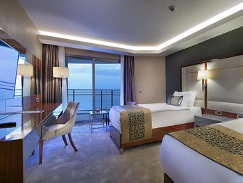 Гостям курортного отеля Ramada Kusadasi & Golf предлагается размещение в просторных номерах с собственным балконом, с которого открывается вид на Эгейское море. Номера оборудованы кондиционером, мини-баром и телевизором с плоским экраном, транслирующим спутниковые каналы. Кроме того, в номерах есть гостиная зона и установлен сейф.