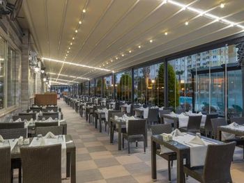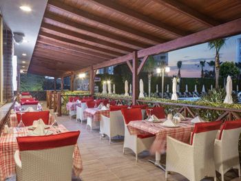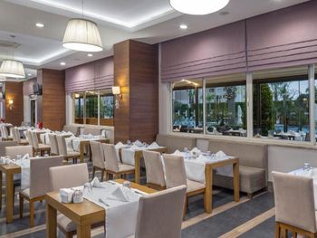 Ресторан в отеле отличный, еда разнообразная и вкусная. Целый день в отеле где-то кормят (кроме основного ресторана есть бары и кафе). Номер чистый и комфортный. Территория отеля чистая и приятная, с бассейнами и горками. Есть детский клуб, аниматор София отлично занимала нашу дочку, для детей есть мероприятия: пекут печенье, из глины лепят, вечером мини-диско. Пляж рядом, нужно немного пройти или дождаться шатла (каждые 10-15 мин.). На пляже тоже есть бассейны, в детском бассейне целый городок с горками и поливалками. Пляж чистый, море утром тоже чистое. Персонал очень вежливый, мы приехали рано утром и нас постарались заселить как можно раньше. Рядом с отелем есть продуктовый магазин Мигрос, рынок со всякой всячиной.