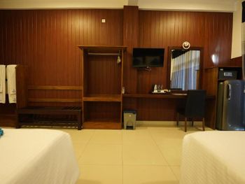 Просторный номер с двумя большими кроватями и всем необходимым для нормального проживания. Хорошие завтраки.