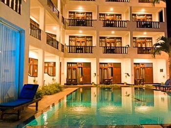 Отель через достаточно оживлённую дорогу от пляжа. Богатый завтрак- блины, омлет, фрукты, хлопья и ланкийские деликатесы- острое мясо, рис. Номер достаточно большой, удобная кровать, много источников света, что очень порадовало. Бассейн чистый.