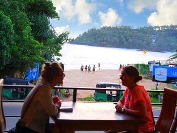 напротив выхода на пляж, неплохая Кухня хороший повар.