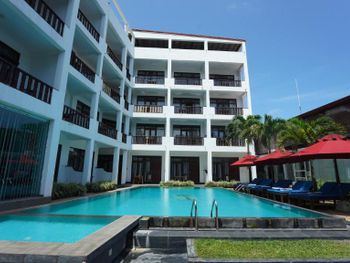 Удобное расположение отеля относительно пляжа, слева если смотреть на море место для купания с детьми, за островом, справа сильные волны. На выходе из отеля парковка тук-туков, удобно до крупного магазина 200 батт, также лучше с ними ехать на coconut tree hills, они довезут почти до верха, проведут через дворы. Есть небольшой бассейн, но с 11:00 в нем активное солнце. На пляже есть хорошее кафе central beach, даже готовили бесплатно детям картофельное пюре. При выезде сел аккумулятор у машины, безвозмездно помогли завести автомобиль.