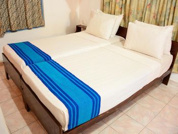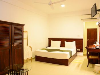 Бронировали стандарт, на фотографиях совершенно другие номера, поменяли на делюкс за доп. Плату, полотенца и постельное белье всегда с пятнами , но это проблема у всех отелей на Ланке. На завтраки только омлет ... не стоит брать , рядом есть недорогие места и выбор.