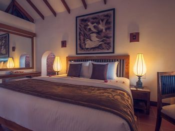 Мы приехали после обеда, возникла проблем, нас хотели заселить в виллу, где нет пляжа. Где просто океан и камни. Нас это не устроило, потому что у нас была оплачена вилла и мы хотели выход на пляж, как у всех остальных гостей.