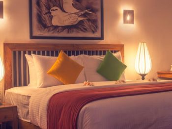 Большая красивая территория отеля, бунгало большое, комфортное, есть все необходимое, чайник, чай, вода. Доброжелательный персонал , очень хорошие завтраки и ужины. Отель очень понравился, на 3-4 дня рекомендуем.