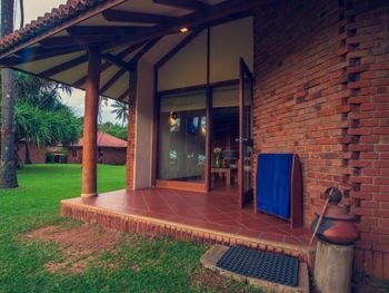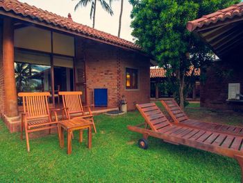 Очень красивый отель. Очень много зелени. Симпатичные кирпичные домики и красивые номера. Чистая ухоженная территория. Собственный пляжик. В отель переправляют на плоту через речку. Необычно.