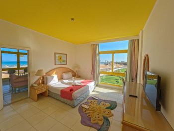 Разочаровал персонал: выглядят внешне не опрятно, не знают как себя вести, такое ощущение, что собрали с трущоб бедолаг, дали одежду и на этом всё. Сервиса нет. Еда очень скудная, из фруктов только дыня, апельсины и финики. По разу за неделю были арбуз, бананы и инжир. Рыба никакая. Не вкусно. Пляж есть, но его нет: по колено метров 50 надо идти. В воде сплошные водоросли, никаких кораллов красивых рыбок нет. Аквапарка нет: эти старые и страшные горки нельзя назвать аквапарком. Анимация в отеле отсутствует: ребята вроде есть, но активности и двужихи нет. Отель заполнен процентов на 40, может и меньше, и это в самый сезон.