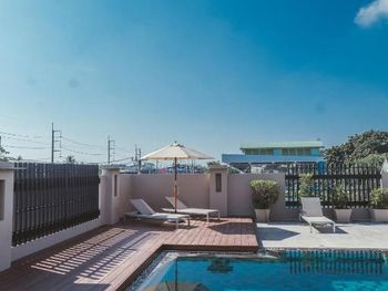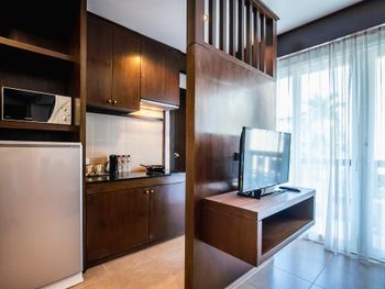 Отель удобен только тем,кто снимает байк или авто.Есть сервис-такси.Иначе ни пляжей,ни достопримечательностей не видать.Рядом есть 7/11.Кровать огромная,с жестким матрасом.Уборка номеров каждый день
