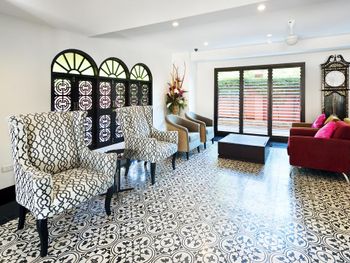 Номер на фото и в реальности сильно отличается. Пришлось тащить чемоданы на 3 этаж без лифта, вайфай каждые 10 минут отрубался и постоянно нужно было заново вводить пароль. Расположение неудобное, рядом почти ничего нет, а если вызвать такси так пробки гарантировано на 40+ минут. В номере были насекомые и ящерицы. В номере не было настольной лампы, вентилятор скрипел, горячая вода почти не работала