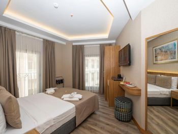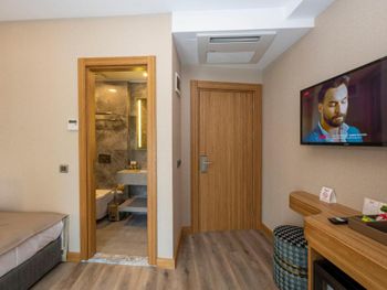 Персонал приветлив и общителен. Обо всём могут рассказать и показать. Сам отель из-за своей маленькой высоты удобный. Есть лифт. Быстро можно попасть в номер. Сами номера компактны и всё вмещается. Утром есть завтраки. Хорошие завтраки. Также помогли с химчисткой. Выгодно и быстро сделали. С трансфером в аэропорт тоже помогли. Вся мебель новая и хорошо открываются ящики. Занавески чистые. Освещение работает хорошо. Душ классный. Уборка по часам что помогает быть готовым к расписанию. Конечно может быть кому-то не понравится селиться в Султанахмете, но до трамвая недалеко, а это основной транспорт здесь.