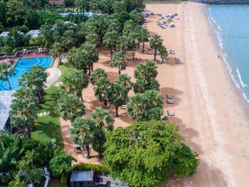 Хорошее место расположения! На такси до центра Паттайи 20 минут, такси обходилось в 150-160 Батт. Но, сюда возвращаешься, как в оазис. После шумной и довольно грязной Паттайи, тут тихая пальмовая роща на пляже. Всегда есть свободные лежаки, играет фоновая классическая музыка. Вкусные и разнообразные завтраки. Просторные номера. Море только два дня из 21 было грязным, но работники отеля постоянно убирали мусор на пляже.