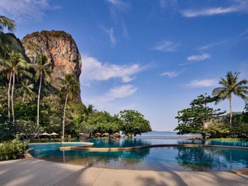 Насладитесь великолепным сервисом в Rayavadee- SHA Extra PlusМы работаем над переводом этого описания на ваш язык. Приносим извинения за неудобства.Luxurious beachfront accommodation along Krabi\'s Andaman Coast is provided at the 5-star Rayavadee- SHA Extra Plus, just next to Krabi Marine National Park. It has a full-service spa, 4 dining options and an outdoor pool.