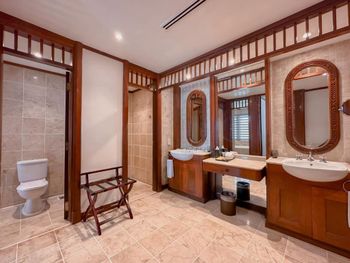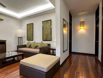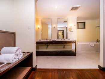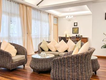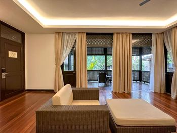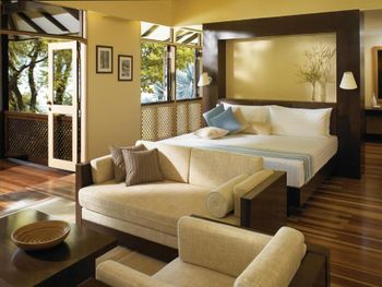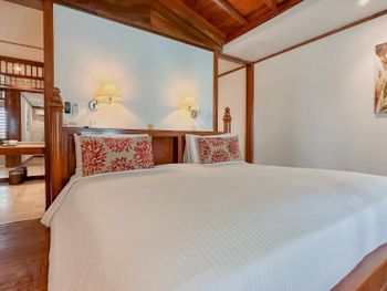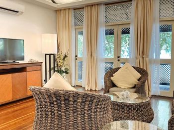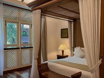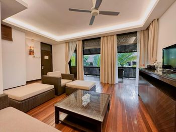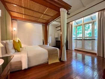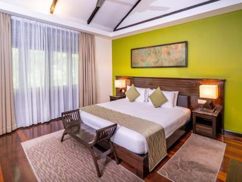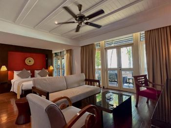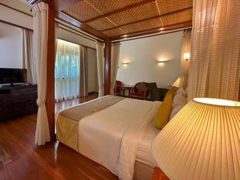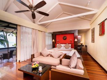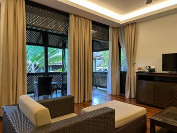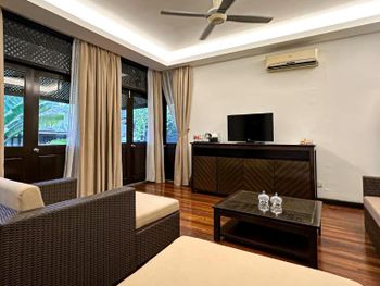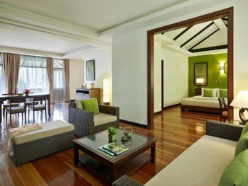 Номера и люксы оформлены в малайском стиле, обставлены деревянной мебелью и оснащены современными удобствами. Во всех номерах имеются собственные балконы с видом на море или сад. В люксах также есть отдельные гостиная и обеденная зоны. Собственная ванная комната укомплектована туалетно-косметическими принадлежностями премиум-класса.