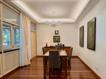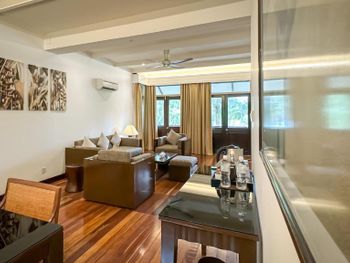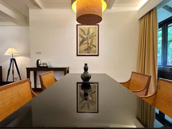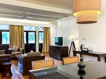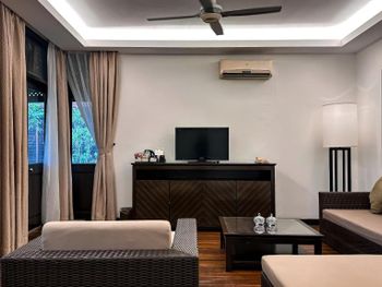 Очень тихое живописное место с очень внимательным персоналом. Настоящий райский уголок, куда можно убежать от шумного города и активной работы. Где можно медитировать и морально восстанавливаться! Уже на рецепции во время поселения нам предложили прохладный сок и холодные влажные полотенечка на шею, чтобы нивелировать жару! Было неожиданно и очень приятно! Вкусный, разнообразный завтрак: каждый найдет все по своему вкусу - и европейцы и жители местного региона. Ну и хорошее шампанское - тоже предлагают на завтрак))))). Чистые номера, ежедневная уборка, замена полотенец, туалетных принадлежностей, халатов. Очень удивило, что для отдыхающих в номерах и на рецепции есть зонты - на случай внезапного ливня, который часто встречается в августе - октябре! А также есть фумигатор с пластинами!!! Но мы им не пользовались - так как комаров в номере не было. Комары есть немного вечером на пляже. Каждый вечер за ужином (платный) - живая музыка (ненавязчивая, спокойная, релаксирующая).