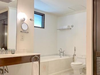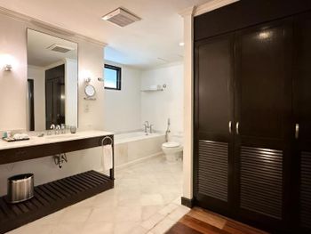 Этому отелю, а в особенности персоналу мне хочется петь дифирамбы бесконечно. А в особенности  самому лучшему в мире front manager Haafiz Kassim. Именно он сделал наш отдых незабывемым. Итак, начну с самого начала. Приехали в отель мы утром и увидели прям пик отлива: камни, запах, ил... все это нас просто убило и мы не захотели останавливаться в этом месте. Хотелось рай, песочек и лазурное море. Мы все это озвучили менеджеру и он нам , посмотрев прогноз отливов , сказал, что через три дня это безобразие закончится и что обычно к обеду вода приливает и все отлично. Ну мы, конечно, туристы проженные и просто словам не верим. Решили остаться в отеле на пару дней, осмотреться и решить оставаться ли на весь забронированный срок. Чтобы нас порадовать,  нам бесплатно повысили категорию до делюкса с шикарной ванной (см. фото) и терассой с видом на океан. А также презентовали бутылку прекрасного вина. Забегая вперед скажу, что в этот же вечер мы решили, что остаемся!!! Итак, кратенько плюсы: ➕️ уединенный отель на острове, соответственно мало людей, без тусовок, тихо и хорошо; ➕️ шикарнейшие и вкуснейшие завтраки внимание ‼️ с бесплатным  шампанским; ➕️ номер хоть и не новый, но большой и красивый с прекрасным  видом на океан; ➕️ супервежливый персонал: у нас каждое утро подходили и спрашивали все ли нам нравится, что следует улучшить; ➕️ для меня отдельный остров - это сказка. Это прям как Мальдивы, но в 10 раз дешевле; ➕️ зеленая трава ➕️ обезьяны. В отличие от тех, которые живут на Лангкави, тут они шуганные. Не подходят к людям, не воруют, да и вообще можно спать с открытыми дверями, в то время как на самом Лангкави они супернаглые: даже дерут сидушки мопедов у туристов ➕️ отсутствие медуз. То есть можно купаться. На тусовочном пляже Ченанг на самом Лангкави идешь по пляжу и везде лежат медузы. Я даже побоялась в воду входить. А тут видели всего один раз. ➕️ на острове куча интересных тропинок по джунглям, которые оборудованы.