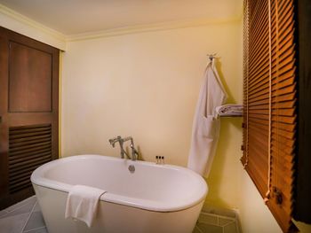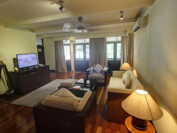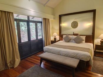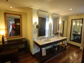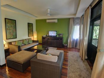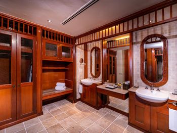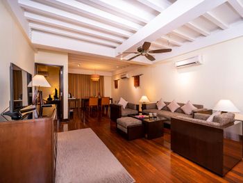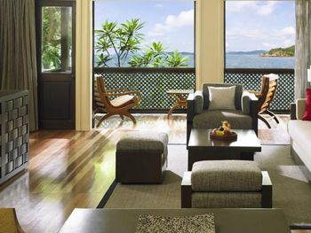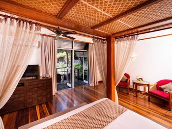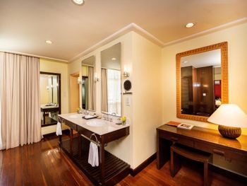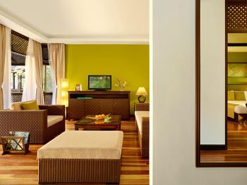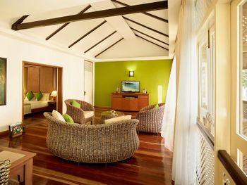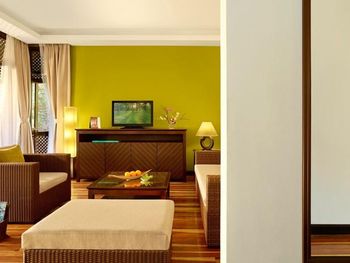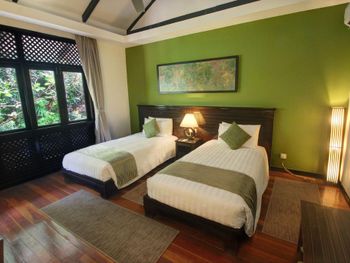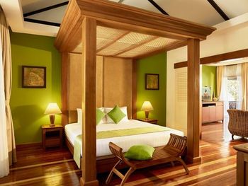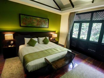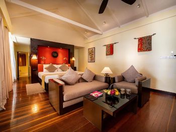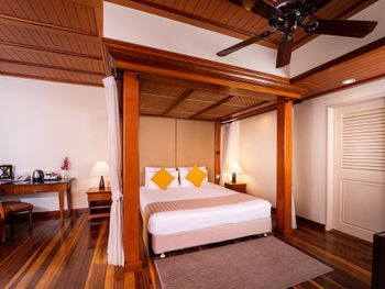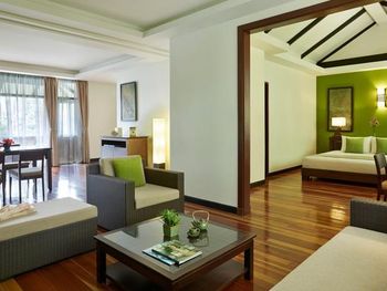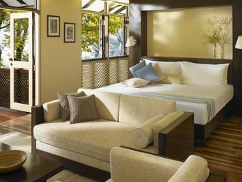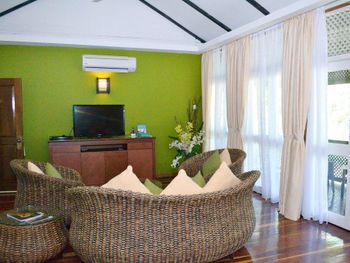 Номера и люксы оформлены в малайском стиле, обставлены деревянной мебелью и оснащены современными удобствами. Во всех номерах имеются собственные балконы с видом на море или сад. В люксах также есть отдельные гостиная и обеденная зоны. Собственная ванная комната укомплектована туалетно-косметическими принадлежностями премиум-класса.