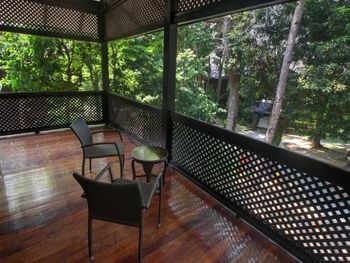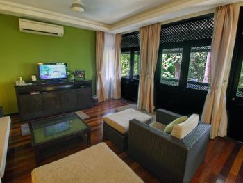 Понравилось все. Большая и чистая территория, действительно ощущаешь уединенность, по сравнению с главным островом. Номер нам достался большой, 2 спальни и гостиная, хотя бронировали 1 спальню и гостиную, плюс большая терраса, за это прям спасибо отдельное. Мебель в номере старая, но это даже прикольно и аутентично. Единственное если есть выбор, то просите 2 этаж. Убирались очень хорошо в первой половине дня. Правда под кроватями пыль совсем не протирают. Завтраки отличные! Персонал отличный. Вайфай хороший на всей территории. Трансферы на остров четко по расписанию, за все время был только 1 раз небольшой сбой, возможно, из-за отлива или дождя. Если народу больше, чем вмещает катер, то тут же второй готов отвезти вас. Совет- когда подплываете к пирсу , то сразу заказывайте грэб, тогда уедете в числе первых или придется ждать минут 10. Можно, конечно, и пешком до ченанга дойти, но по жаре это очень некомфортно , а грэб стоит сущие копейки. Кстати, если идти на ченанг пешком через прибрежную деревню, то там можно встретить забавных пушистых обезьян. Они не похожи на тех, что живут на Ребаке. Обезьяны на Ребаке, кстати, совсем неручные и недружелюбные. Вечером в ресторане и в баре устраивают музыкальные программы с живой музыкой, очень атмосферно.