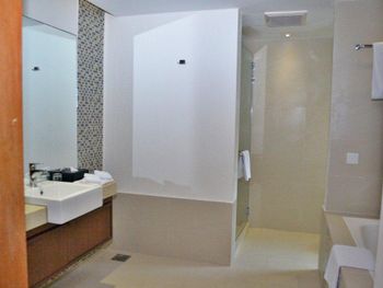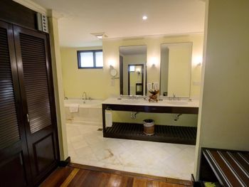 Этому отелю, а в особенности персоналу мне хочется петь дифирамбы бесконечно. А в особенности  самому лучшему в мире front manager Haafiz Kassim. Именно он сделал наш отдых незабывемым. Итак, начну с самого начала. Приехали в отель мы утром и увидели прям пик отлива: камни, запах, ил... все это нас просто убило и мы не захотели останавливаться в этом месте. Хотелось рай, песочек и лазурное море. Мы все это озвучили менеджеру и он нам , посмотрев прогноз отливов , сказал, что через три дня это безобразие закончится и что обычно к обеду вода приливает и все отлично. Ну мы, конечно, туристы проженные и просто словам не верим. Решили остаться в отеле на пару дней, осмотреться и решить оставаться ли на весь забронированный срок. Чтобы нас порадовать,  нам бесплатно повысили категорию до делюкса с шикарной ванной (см. фото) и терассой с видом на океан. А также презентовали бутылку прекрасного вина. Забегая вперед скажу, что в этот же вечер мы решили, что остаемся!!! Итак, кратенько плюсы: ➕️ уединенный отель на острове, соответственно мало людей, без тусовок, тихо и хорошо; ➕️ шикарнейшие и вкуснейшие завтраки внимание ‼️ с бесплатным  шампанским; ➕️ номер хоть и не новый, но большой и красивый с прекрасным  видом на океан; ➕️ супервежливый персонал: у нас каждое утро подходили и спрашивали все ли нам нравится, что следует улучшить; ➕️ для меня отдельный остров - это сказка. Это прям как Мальдивы, но в 10 раз дешевле; ➕️ зеленая трава ➕️ обезьяны. В отличие от тех, которые живут на Лангкави, тут они шуганные. Не подходят к людям, не воруют, да и вообще можно спать с открытыми дверями, в то время как на самом Лангкави они супернаглые: даже дерут сидушки мопедов у туристов ➕️ отсутствие медуз. То есть можно купаться. На тусовочном пляже Ченанг на самом Лангкави идешь по пляжу и везде лежат медузы. Я даже побоялась в воду входить. А тут видели всего один раз. ➕️ на острове куча интересных тропинок по джунглям, которые оборудованы.