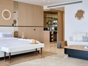 Общий дизайн отеля, очень приятные, комфортабельные номера, красивая и интересная территория. Прекрасный персонал, все очень внимательные. Удобный пляж, все построено хорошо.