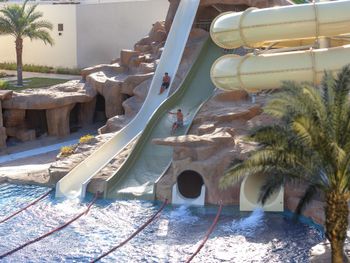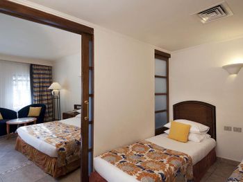 Обман в описании семейного номера. Заявленные 44 квадратных метра (которых и так было бы впритык при наличии двух подрощенных атлетов младшего возраста) на деле оказались тридцатью восемью! Не сложно было подсчитать по плитке пола 30х30. Просто, за эти деньги мы могли бы выбрать номер более просторный в другом отеле. Вообще, жилой фонд здесь - слабое место. Первый номер - не закрывалась на замок балконная дверь, кнопки сейфа залипли, как у старого тв пульта. Второй номер - плохо работал смыв унитаза. Два раза приходил сантехник - результат 0. Анимация - отдельная песня. Более ленивой, незаметной, серой и безталанной не видел никогда. Если парни еще пытались зажигать и даже были замечены в оригинальном шоу, то девушки в основном прятались, болтали друг с другом и подкреплялись в ресторанах. Их точно можно отправлять на родину. Персонал в меру приветлив. Официанты за 8 дней предлагали принести напитки ну пару-тройку раз. Для нас это вообще не проблема. Пишу об этом только для тех, кому, может быть это действительно важно. Всегда говорю себе - жарко, народу полно (майские праздники), работы много, ребятам платят мало. - ну чего тебе самому то не сходить за кофе или бокалом вина (ну не из княжеского же рода). Пиво - так себе, горчит и безалкогольное почти. Если теплое вино (охладить что ли лень) разливают из пакетов, то пиво откуда берут не видел ни разу.. Красное вино - нормальное, белое - уж очень ядреное, на мой вкус. Из моря начинали выгонять уже в шестом часу вечера, хотя в соседних отелях все еще купались до 7. Что делать после 6 - вопрос. Бассейны закрывают тоже. Забирают скудный инвентарь - чудовищные ракетки от настольного тенниса (это фанерка со свисающей отклеенной резинкой) и "особо ценный"шарик настольного футбола (он что, из слоновой кости?) Просто позорище. Лобби отеля и верхний бар - это ад. Все комары Шарма слетелись туда. Карелия отдыхает. А ведь решить эту проблему - копеечное дело. Тоже самое с птицами в нижнем ресторане.