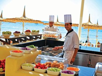 Когда мы приехали, отель не был заполнен на 100 %, и было достаточно свободно в ресторанах, на пляже. Понравилось питание, весьма качественное. Красивая территория, великолепный коралловый риф. Большинство персонала в ресторане и барах работает быстро, понимают русский.