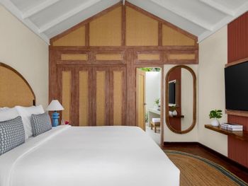 There is abandoned space around the water villas, the bar at the aisle to the villas does not work, the same with the pool bar, the shore is unenhanced with rubbish heaps and old sun loungers and umbrellas lying around. The beach is poor compared to the beach at the deluxe villas. The room was cleaned only 1 time in 4 days of stay! In the evening before leaving, they promised to bring information to the room about the time and organization of the transfer - they did not bring it, we had to go to the reception ourselves.
