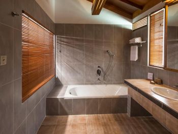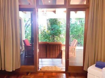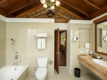Брали пляжную виллу - в 10 метрах от пляжа, с своими качелями- основной номерной фонд отеля. Достаточно неплохо, приятная спальня на 3-4 человека, чистая просторная ванная, горячая-холодная вода. Почти все что нужно.