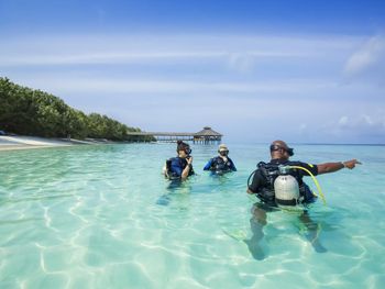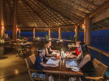 A very beautiful reef, a large variety of fish. Stingrays, mantas and sharks are fed every evening, a fascinating show. Quiet, green island. Good quality of food.