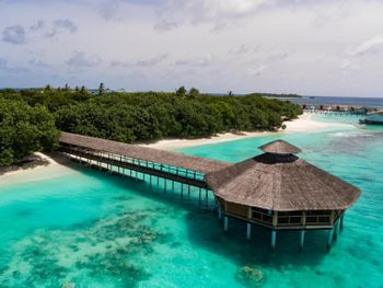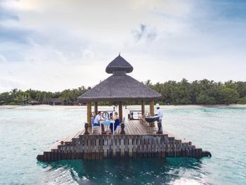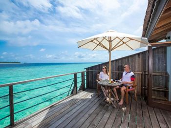 Потрясающий вид из водной виллы. Полное уединение и релакс. Очень вкусная и разнообразная еда, большой выбор блюд для вегетарианцев, фрукты. В All inclusive входит все, кроме некоторых алкогольных напитков и мороженого. Остров чистый, видно что за этим тщательно следят. Есть доктор, дайвинг центр.