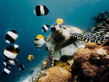 Волшебный риф, очень много разных рыб и животных: черепахи, рифовые акулы, осьминоги.