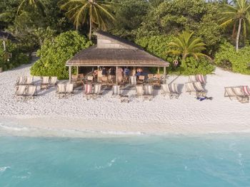 Остров- отель. Небольшой островок, 10 минут из конца в конец по самому длинному маршруту. Живописная природа, отличный пляж- почти все пляжные виллы имеют доступ к шикарному пляжу. Отсутствие волнорезов в воде почти на всем острове- залог шикарных фото без потусторонних "каменных гряд" в лазурном море. Хорошая организация трансфера- ни минуты задержки в обе стороны. Кто впервые летит на Мальдивы- не пожалейте лишние 200 баксов и закажите трансфер на гидроплане, оно того стоит.