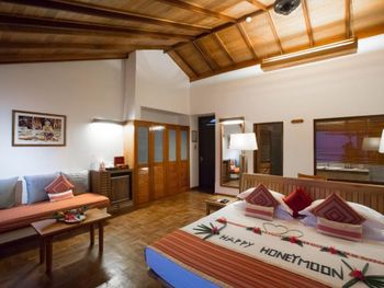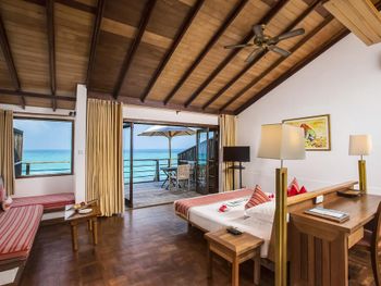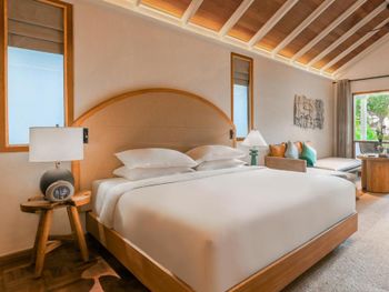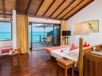 There is abandoned space around the water villas, the bar at the aisle to the villas does not work, the same with the pool bar, the shore is unenhanced with rubbish heaps and old sun loungers and umbrellas lying around. The beach is poor compared to the beach at the deluxe villas. The room was cleaned only 1 time in 4 days of stay! In the evening before leaving, they promised to bring information to the room about the time and organization of the transfer - they did not bring it, we had to go to the reception ourselves.